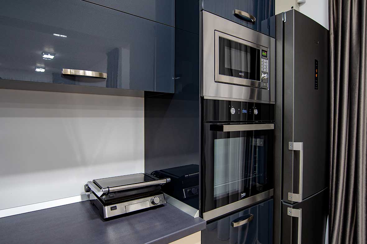 Apartamentele cu terasa dispun de echipament ultra-modern electrocasnic: masina de spalat, frigider, cuptor (cu / fara microunde), plita, grill electric, prajitor paine, fier de calcat, masa de calcat, ceainic electric, hota.
