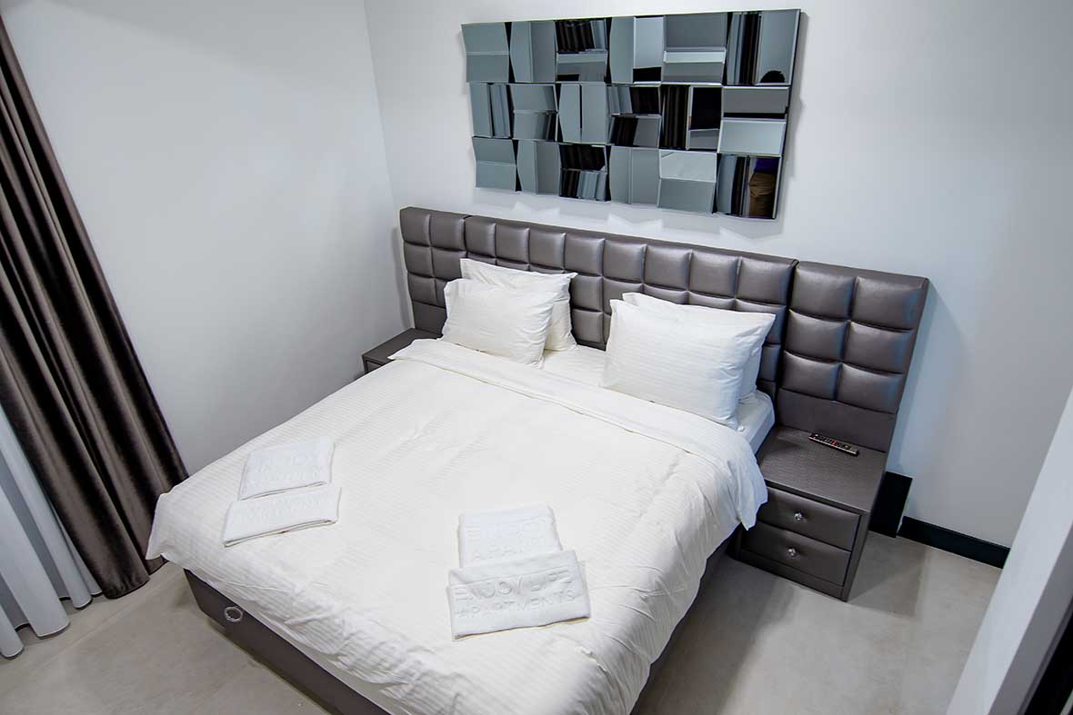 Pot gazdui 3 /4 persoane si dispun de un pat matrimonial super king size si una sau doua canapele in living.
