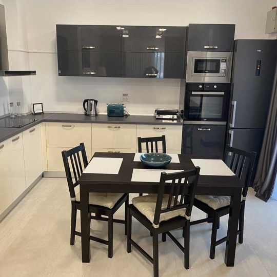 Ai la dispozitie echipament electrocasnic de ultima generatie: masina de spalat, cuptor cu microude, frigider, cuptor simplu, plita, hota, grill electric, ceainic electric, prăjitor de paine, fier de calcat, masa de călcat, aspirator.
