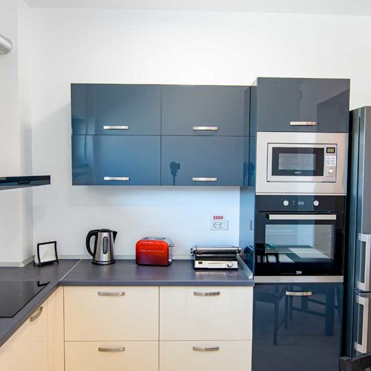 Apartamentele cu terasa dispun de echipament ultra-modern electrocasnic: masina de spalat, frigider, cuptor (cu / fara microunde), plita, grill electric, prajitor paine, fier de calcat, masa de calcat, ceainic electric, hota.