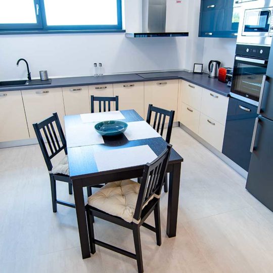 Apartamentele cu terasa dispun de echipament ultra-modern electrocasnic: masina de spalat, frigider, cuptor (cu / fara microunde), plita, grill electric, prajitor paine, fier de calcat, masa de calcat, ceainic electric, hota.